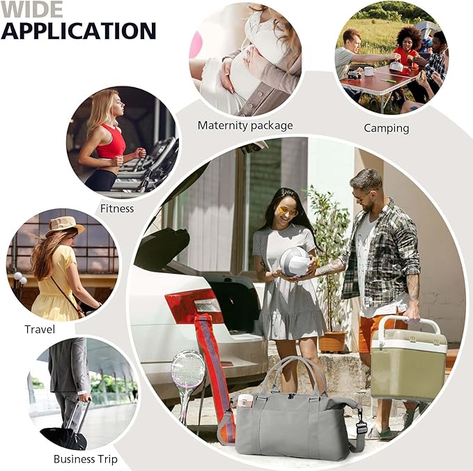 - 【Weekender and Travel Bag】This duffle bag for women is designed to be both fashionable and practical. It can be used as a men's gym sports bag, school luggage bag, travel carry on bag, travel handbag, or gym tote bag, suitable for exercise, travel, sports activities, tennis, basketball, yoga, fishing, hunting, camping, hiking, and many outdoor activities. Choosing our lightweight and portable shoulder bag will kickstart your healthy lifestyle and exciting journeys!