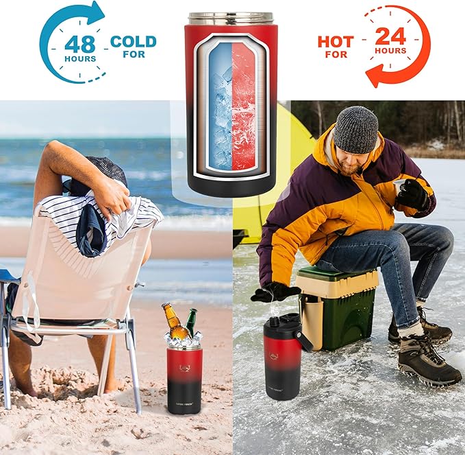- 【Triple-Layer Vacuum Insulation】 – The insulated gallon water bottle is engineered with triple-wall, vacuum-sealed insulation and made from premium 18/8 food-grade stainless steel. This advanced design locks in temperature, keeping drinks ice-cold for up to 48 hours or steaming hot for up to 24 hours. The no-sweat exterior prevents condensation and protects your hands from heat or frost, making it reliable for outdoor sports, travel, camping, and daily hydration