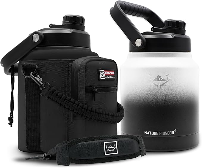 NATURE PIONEOR Insulated Water Bottles with Strap Pouch - 84 oz Stainless Steel Vacuum Bottle with Holder/Carrier/Sleeve - 18/8 Food Grade 84oz Water Jug