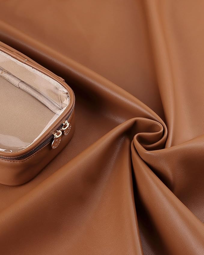 - PREMIUM QUALITY:This elegant clear makeup bag is crafted from high-quality PU leather with durability.The natural texture not only feels luxurious but also adds a touch of sophistication to your travel ensemble.