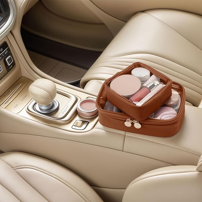 - CLEAR VISIBILITY&EASY ACCESS:Our makeup bag allows you to see all your beauty essentials at a glance,making it effortless to locate and retrieve your favorite products while driving or during a quick pit stop.