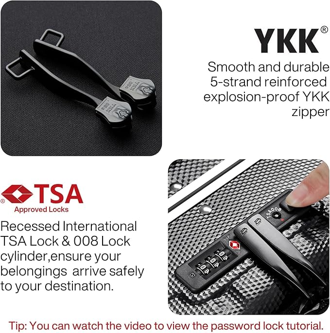 - 【COMBINATION LOCK】One touch to unlock, which is safe and convenient, save both time and labour. This Hanke lock the hardside suitcase features with 008 encrypted lock cylinder, which is more secure and meets airline approved (No Key).