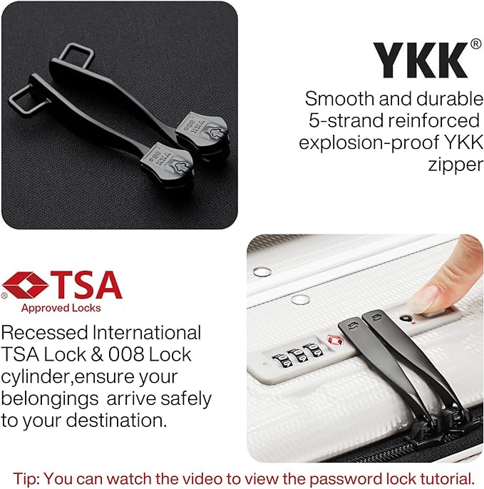 - 【COMBINATION LOCK】One touch to unlock, which is safe and convenient, save both time and labour. This Hanke lock the hardside suitcase features with 008 encrypted lock cylinder, which is more secure and meets airline approved (No Key).