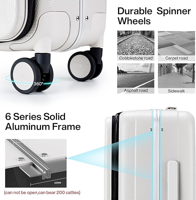 - 【BETTER MATERIAL】This carry-on made of premium polycarbonate PC material that is more durable than ABS+PC, with diamond-shaped texture on the surface to prevent against scratches, so that the suitcases can remain beautiful after a long trip.