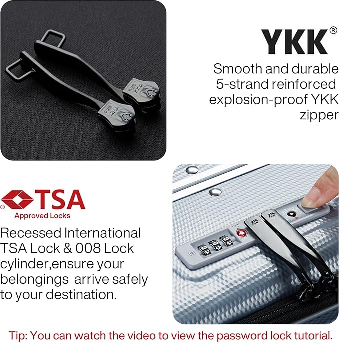 - 【COMBINATION LOCK】One touch to unlock, which is safe and convenient, save both time and labour. This Hanke lock the hardside suitcase features with 008 encrypted lock cylinder, which is more secure and meets airline approved (No Key).