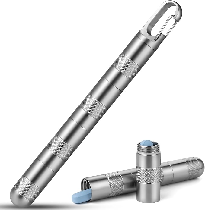 TISUR Keychain Pill Holder, Small Titanium Pill Case,Travel Pill Box Container,Variable Lengths Portable Pill Organizer Waterproof Metal Case Bottle(Gray Titanium XL-4.4inch)