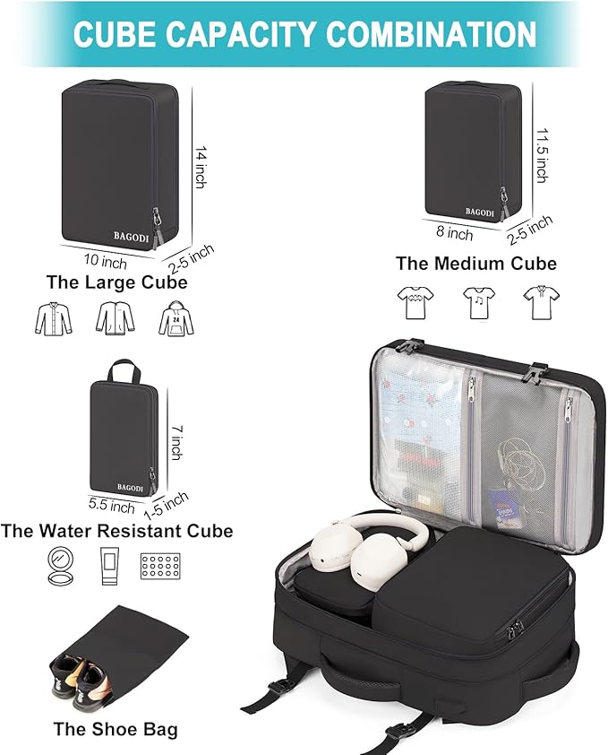 - Expandable Travel Backpack:With an expandable capacity that goes from 22L to 42L, you'll have all the space you need for 3-5 day trips or everyday commuting, giving you the freedom to take everything you need with you. And this carry on backpack meets IATA-approved size requirements, you can easily store it in the overhead bin or under your seat without any hassle. Whether you're traveling around the world or just around town, It is the perfect companion for your next adventure.