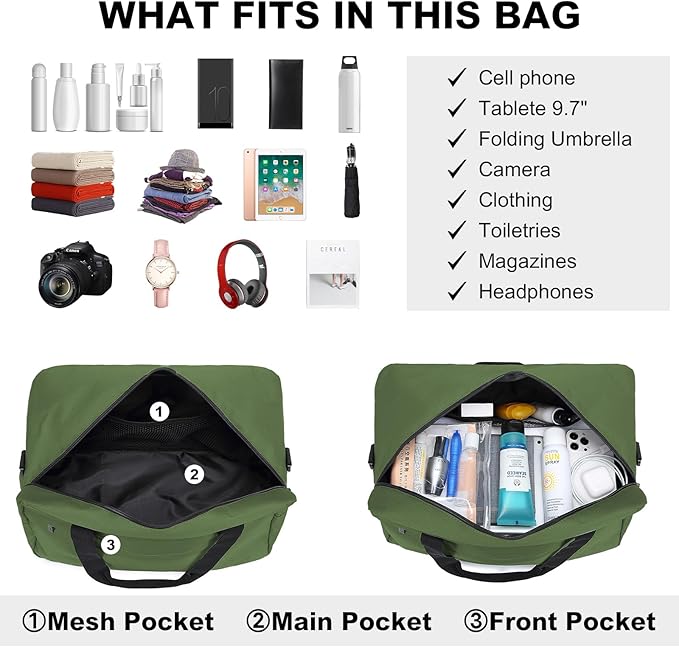 Kono Travel Duffel 20L Under Seat Carry-On Sports Tote Gym Weekender Overnight Bag - 15.75"x9.84"x7.87" Green