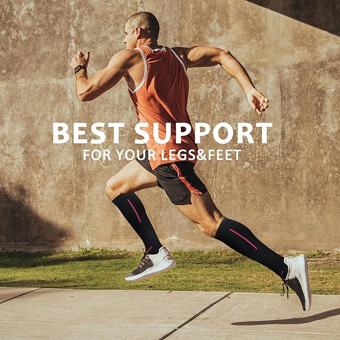 fenglaoda Compression Socks Women Men 6 Pairs, Knee High Best Support Circulation Socks for Running, Travel, Flight, Nurse