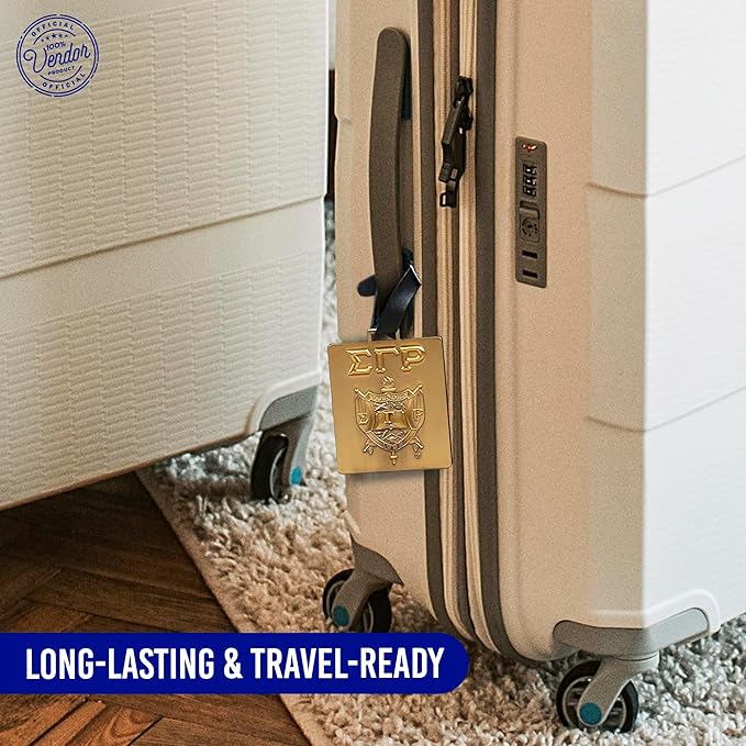 - SIGMA GAMMA RHO LUGGAGE TAGS: Crafted from high-quality zinc alloy with antique gold plating, these set of two luggage tags are built to withstand travel wear and tear while showcasing the official Sigma Gamma Rho Greek letters.