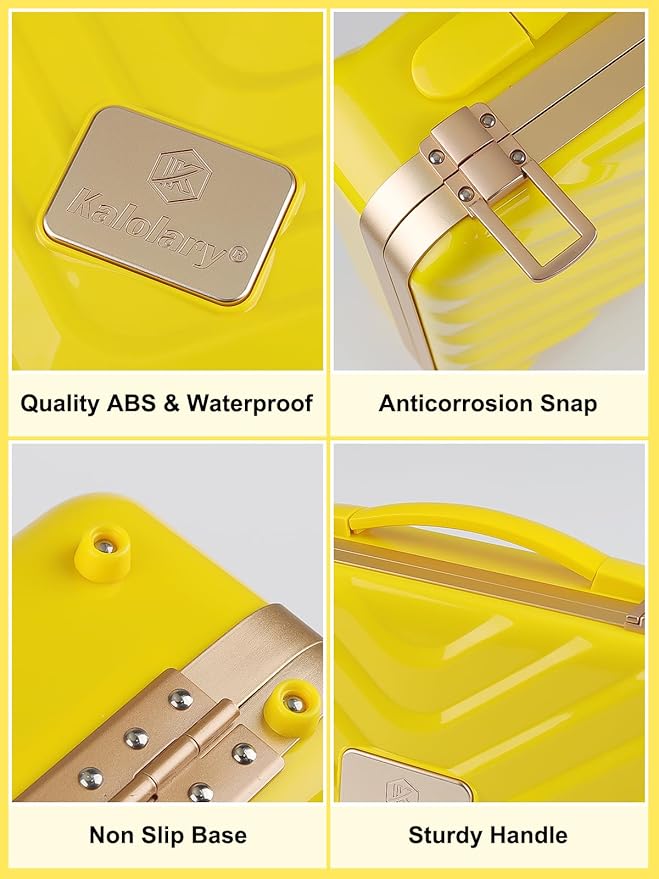 - 💄【Sturdy & Protective】Crafted with superior waterproof ABS and reinforced with an aluminum frame, this makeup case has a strong load-bearing and anti-pressure ability, cushioning your cosmetics from accidental impact and water damage. The electroplated light gold snap is anti-corrosive and won't fade easily. Ergonomic handle design makes it easy to carry, while the double-layer shockproof design inside the mirror ensures lasting protection.