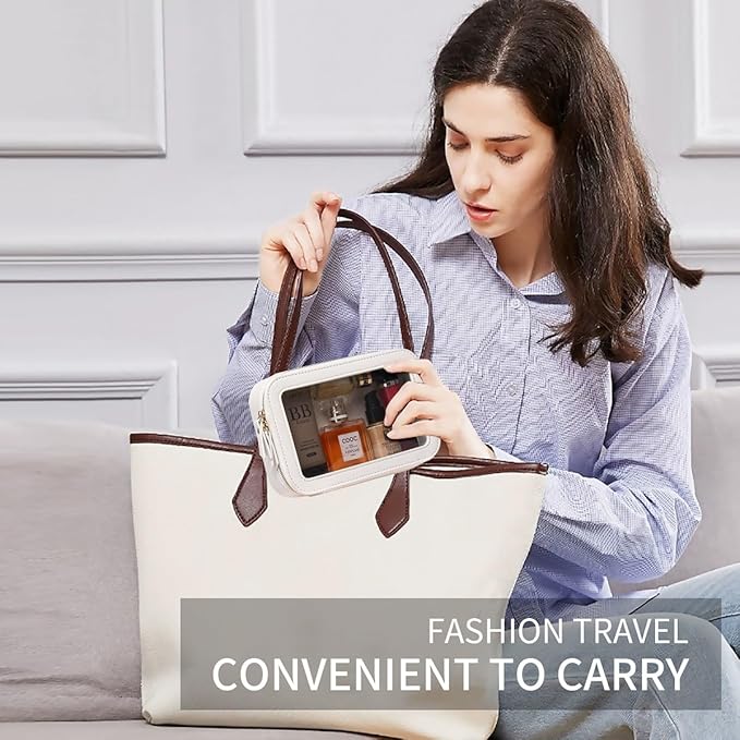 - [Clear Makeup bag ] : Our clear makeup bag set is specifically designed for daily use and travel, with dimensions of 8" * 6" * 2.4" + 9.44" *7.28" *3.5".