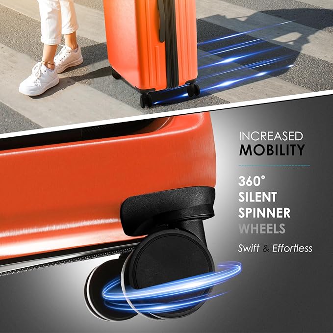 - Carryon Luggage with Spinner Wheels: Rolling carry on luggage for plane travel includes 4 spinner wheels that provide you with smooth, gliding 360 movement, a telescoping handle, stainless steel name tags, and TSA lock to secure your belongings.