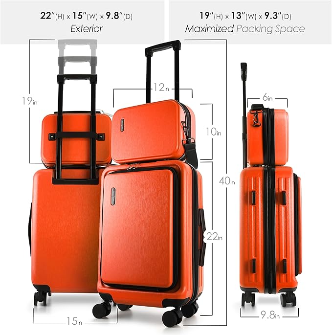20 Inch Carry On Luggage 22x14x9 Airline Approved, Carry On Suitcase with Wheels, Hard-shell Carry-on Luggage, Durable Luggage Carry-On, Orange Small Suitcase with Cosmetic Bag
