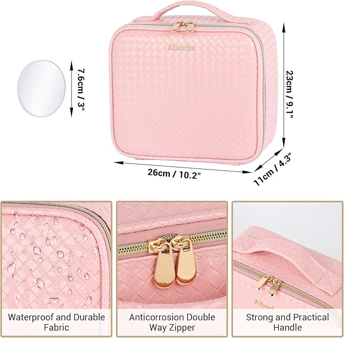 Travel Makeup Bag with Led Mirror Make up Case with Lighted Mirror Cosmetic Organizer bag with Adjustable Dividers and 5X Magnifying Mirror Makeup Box Vanity Case for Women