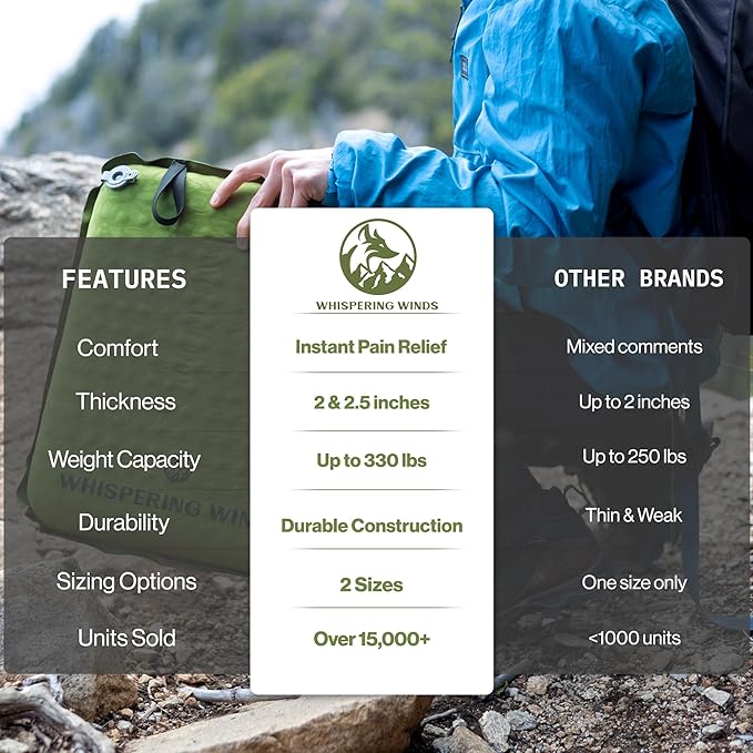 - QUICK & EASY SETUP: The camping seat pad self-inflates and can be manually inflated with just a few breaths to adjust the firmness, allowing you to find the perfect setting that feels just right. One cushion that adapts to meet all your needs.