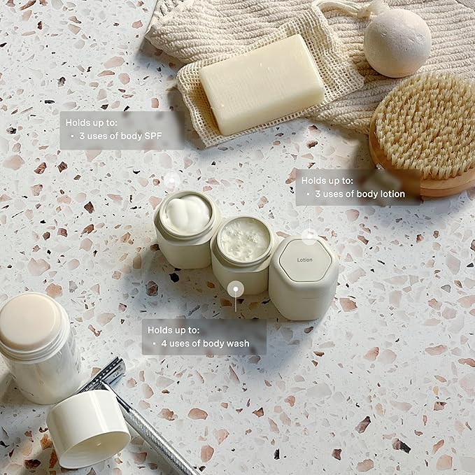 - PATENTED MAGNETIC DESIGN - Designed for seamless storage, our travel capsules feature a magnetic design that connects each container vertically or horizontally. They include magnetic labels that seamlessly swap between The Flex Small, The Flex Medium, and The Flex Large Capsules.