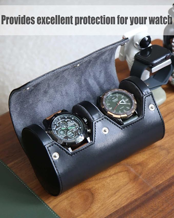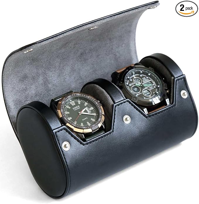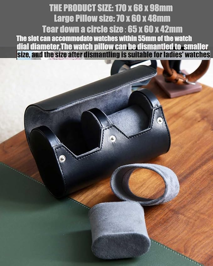 Premium Leather Travel Case, Variable Size Pillow Design, Roll Organizer for Men and Women, Black 2 Slot Portable Storage Box With Faux Suede Fabric Lining