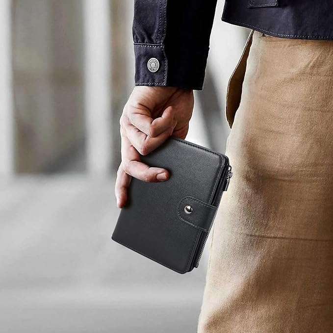 - ✔ Multiple Uses - 3 card slots, 1 ID window, 2 passports slots, 2 large internal pockets for cash, 1 ticket pocket, 1 zipper pocket. Spacious enough to keep your necessities close at hand, ideal travel gifts for traveling or business trip, will really convenience for travelers or business!