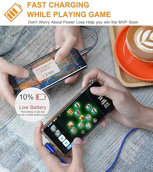 - [Upgraded USB-C Right Angle Design]: This right angle type c charging cable fast charge with an innovative 90 degrees " L " design. It's user-friendly design more convenient and comfortable for playing games, watching videos, reading e-books when you charging.