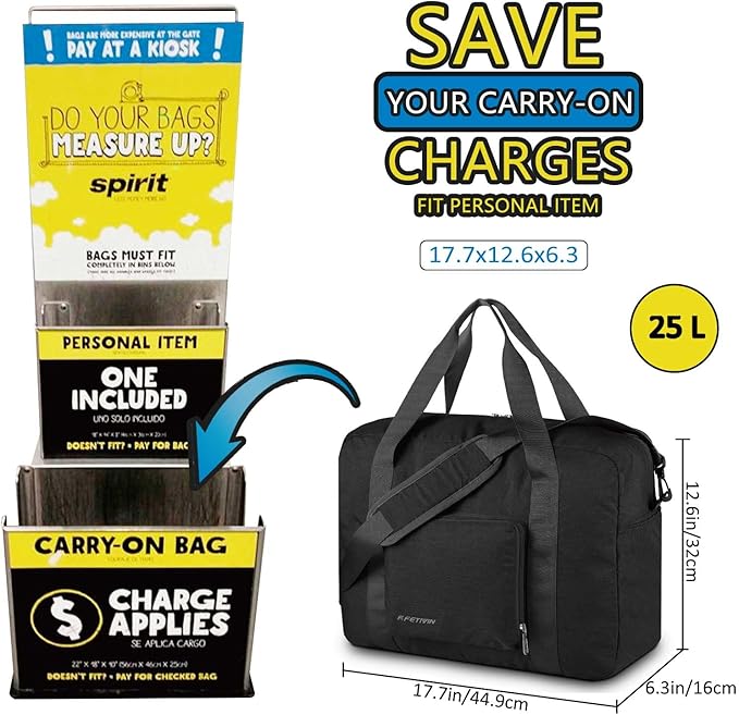 - ✅ Save on your carry-on charges: The 17.7 × 12.6 × 6.3 inch bag size is perfect for Spirit and Frontier's personal item size and can fit under your seat without paying a carry-on fee.