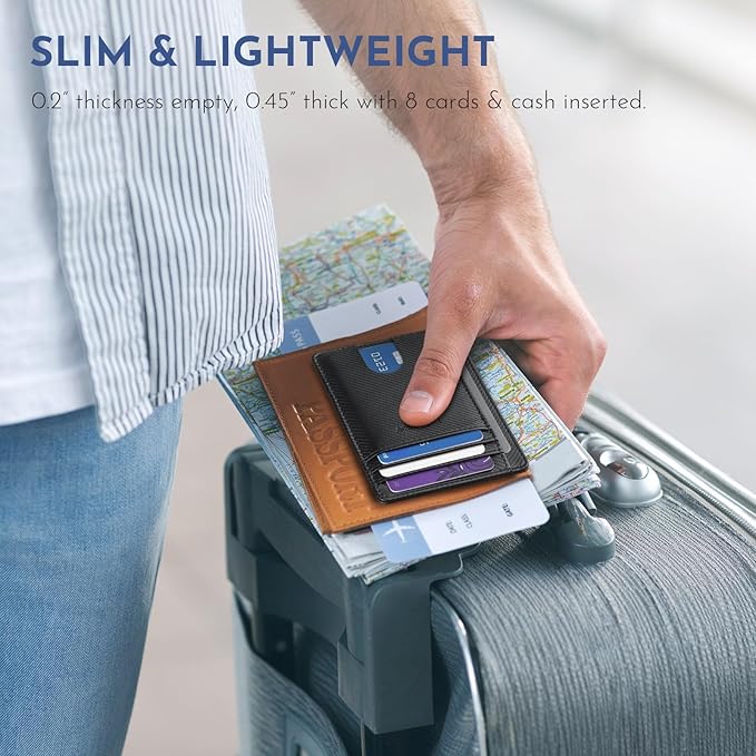 - SURPRISINGLY SPACIOUS: Though slim, it features 8 slots to easily organize your essentials. Comfortably holds your driver's license, credit cards, debit cards, and membership cards, keeping everything you need right at your fingertips.