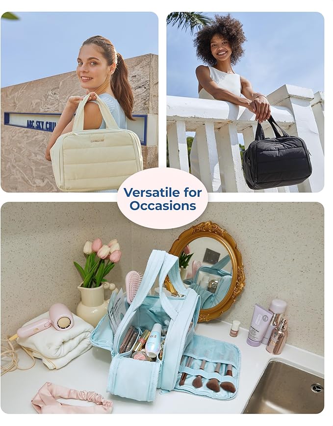 - Ultra Light and Soft Materials: Made of soft and luxurious Taslan fabric. This puffer toiletry bag feels like cotton candy, giving people a relaxed and comfortable atmosphere. Also a reliable, functional, and fashionable makeup bag. Efinitely an ideal Christmas gift for yourself, your family, and your friend