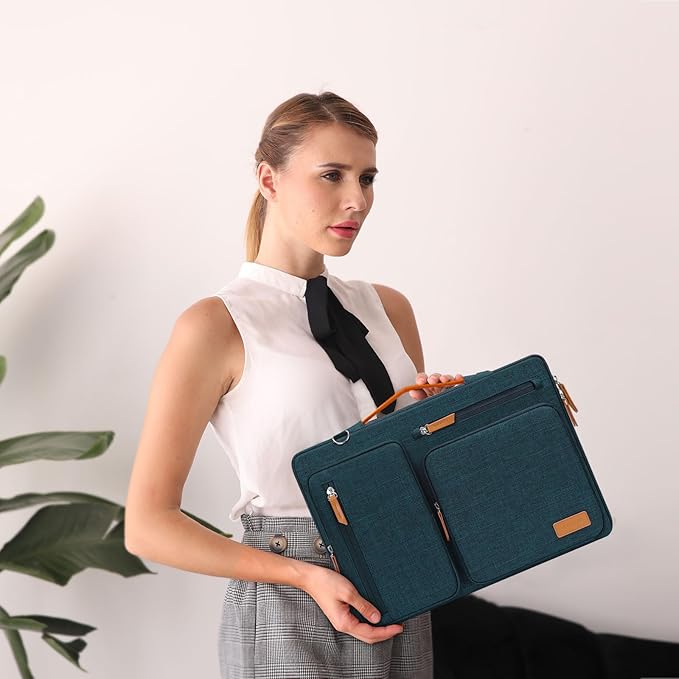 MOSISO 360 Protective Laptop Shoulder Bag,15-15.6 inch Computer Bags Compatible with MacBook Pro 16 inch, HP, Dell, Lenovo, Asus Notebook,Side Open Messenger Bag with 4 Zipper Pockets, Teal Green