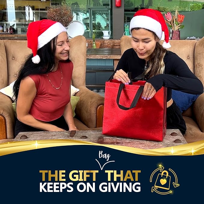 - REINFORCED BOTTOM – Each of the 13(W)x 5(D)x11"(H) large gift bags for presents comes with a cardboard insert to prevent the bottom of the bag from curving and maintain the tote bag shape even when the bag is empty.