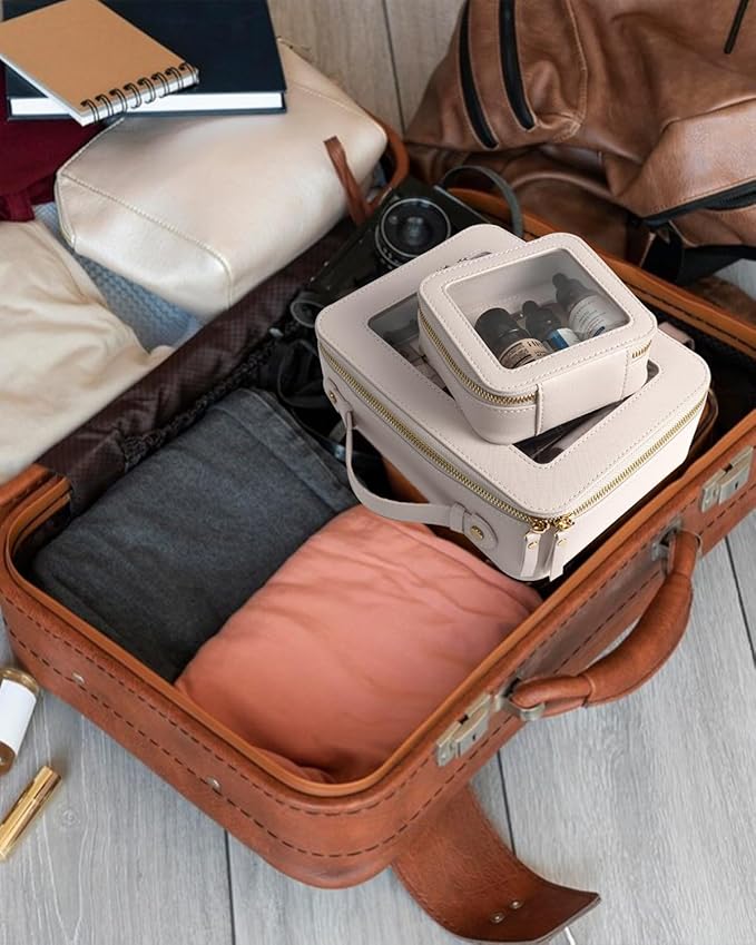 - Clear Design: Our clear toiletry bag set is sleek and minimalistic look for your makeup accessories collection. And is designed with a clear PVC window,all items are clear at a glance, and you can quickly choose the cosmetics you need. Large: 9.44“ x 6.1” x 2.7”, Mini: 5'' x 4.7'' x 2''