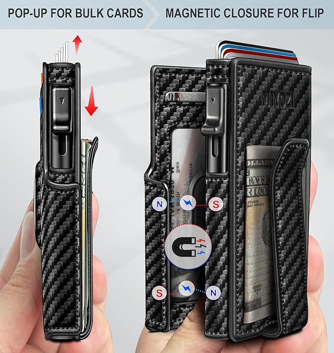 Airtag Wallet for Men,with Money Clip 10 Cards Metal Case Smart Slim Pop Up Credit Card Holder Flip with Magnetic Closure RFID Blocking wallet with Gift Box