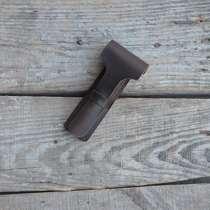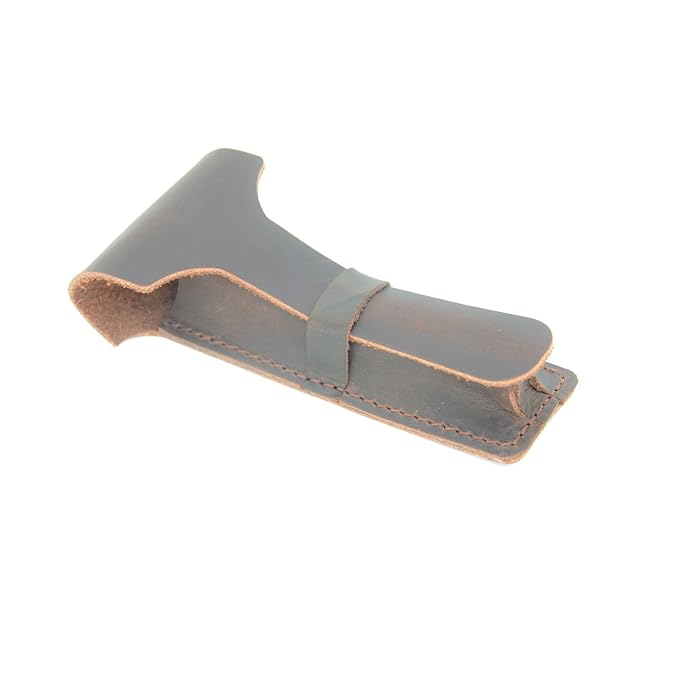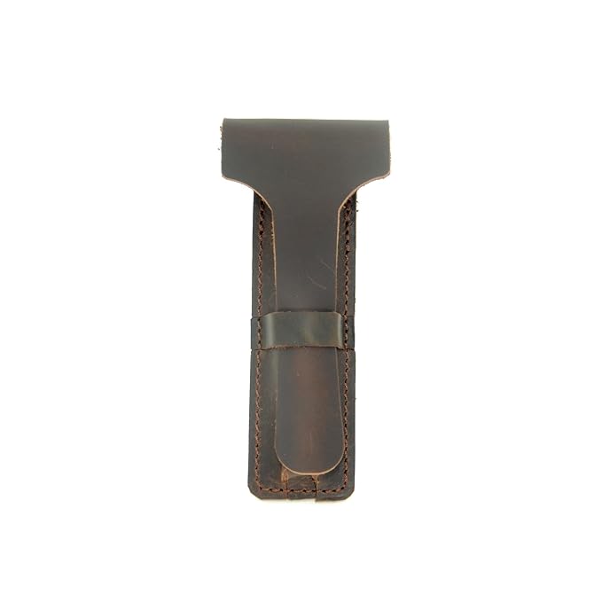 JJNUSA Handmade Sleeve Travel Pouch Leather Safety Razor Case, Double Edge Razor 4.5", Old Fashioned Razor Sleeve Shaving Accessories Men's Shaving Razor (Dark Brown)