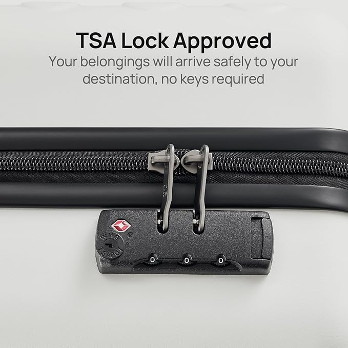- 【TSA Lock Included】The built-in TSA-approved lock (default password: 0-0-0) ensures your belongings stay secure while allowing airport security to inspect your luggage without damage. Set your own password for added peace of mind.