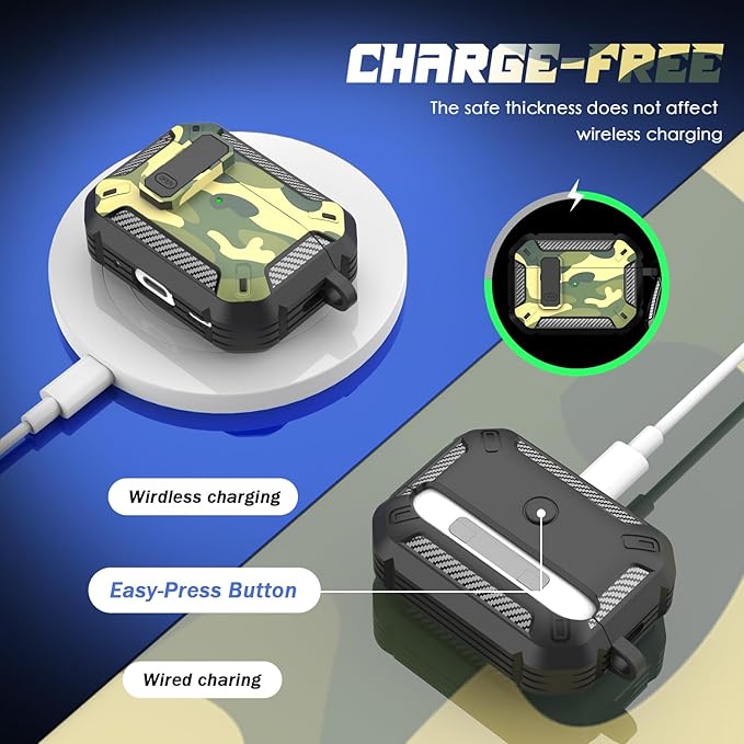 - Unique Security Lock: Upgraded security lock design makes it easier to open and close. Keeps the for AirPods charging case well closed and ensures that the cover never falls off.