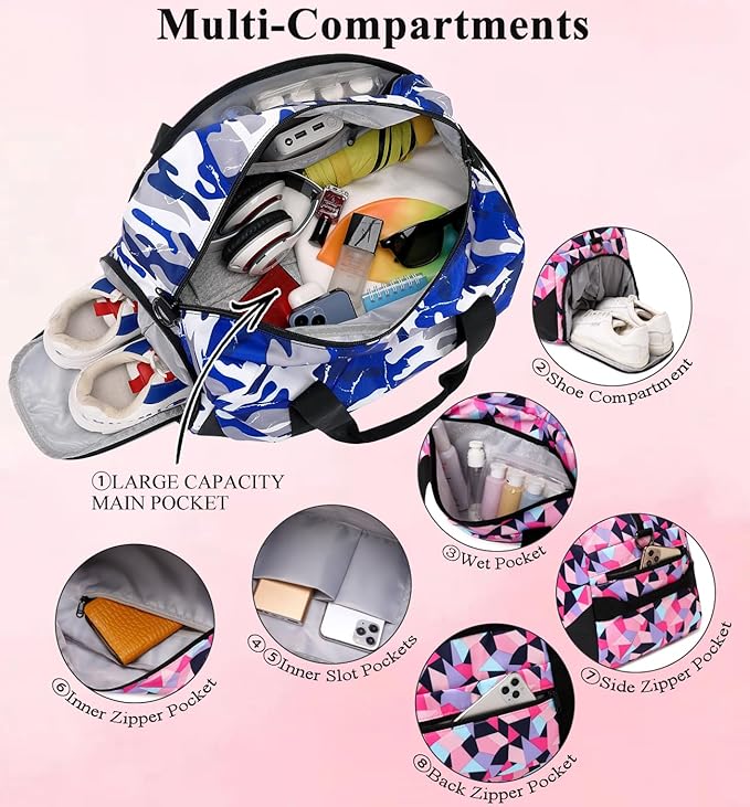 DSIUE Boys Duffle Bag Sports Gym Bag Overnight Weekender Travel Duffel Bag With Shoe Compartment (Camo Blue)