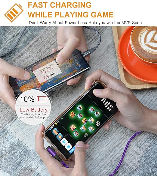 - [Upgraded USB-C Right Angle Design]: This right angle type c charging cable fast charge with an innovative 90 degrees " L " design. It's user-friendly design more convenient and comfortable for playing games, watching videos, reading e-books when you charging.