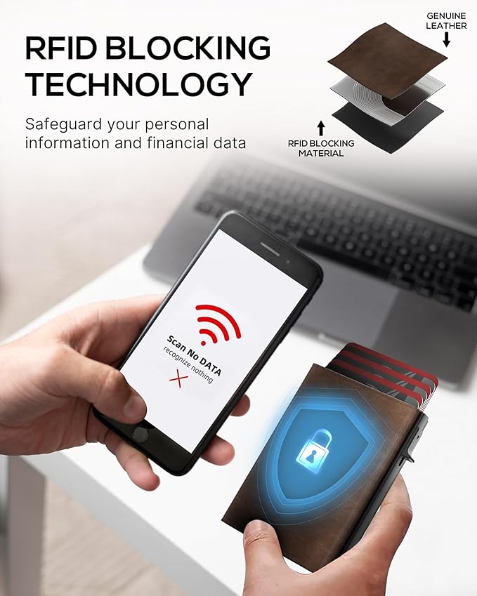 - 【ADVANCED RFID BLOCKING】 Safeguard your personal and financial information with confidence. The secure wallet features cutting-edge RFID blocking technology, effectively creating a shield against unwanted digital intrusion, leaving you in control of your data.