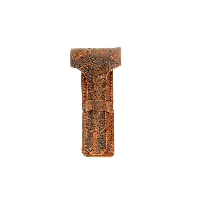 JJNUSA Handmade Sleeve Travel Pouch Leather Safety Razor Case, Double Edge Razor 4.5", Old Fashioned Razor Sleeve Shaving Accessories Men's Shaving Razor Flower Brown