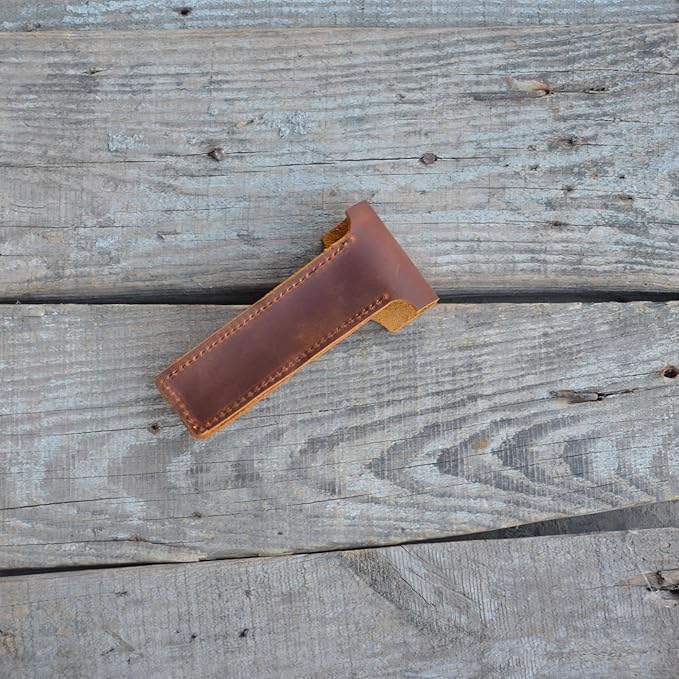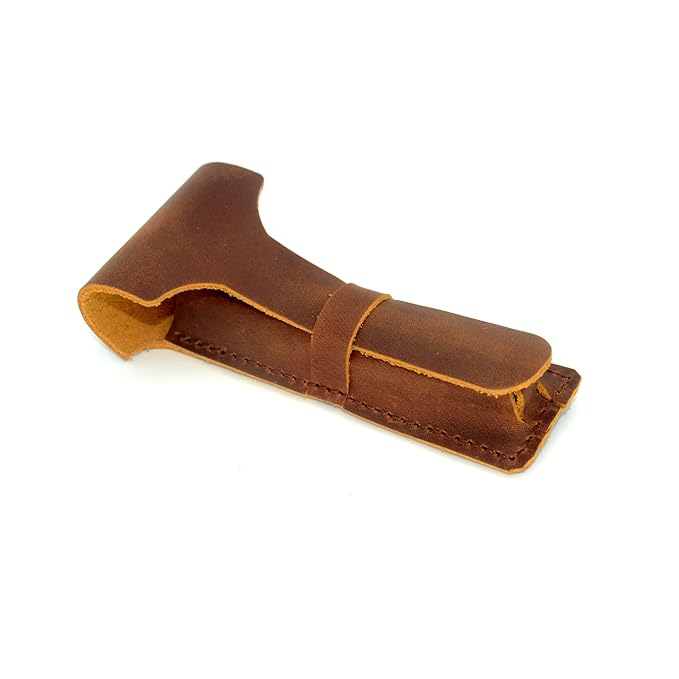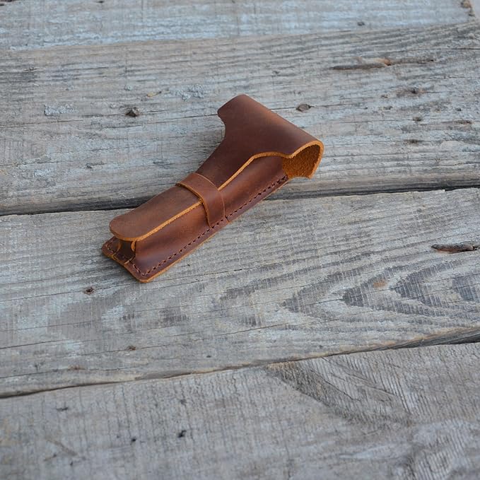 JJNUSA Handmade Sleeve Travel Pouch Leather Safety Razor Case, Double Edge Razor 4.5", Old Fashioned Razor Sleeve Shaving Accessories Men's Shaving Razor Brown