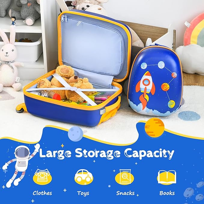 KOTEK Kids Carry On Luggage Set, 16" Hardside Rolling Suitcase with Spinner Wheels, Travel Rolling Luggage for Boys Girls (Spaceman)