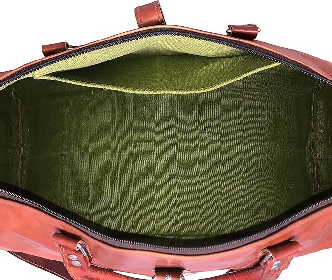 - HANDCRAFTED DUFFLE LEATHER BAG: Crafted from the finest full-grain leather, The bags exude luxury and durability. Each bag is meticulously handmade and lined with sturdy canvas, Ensuring longevity and resilience against everyday wear and tear. What sets the products apart is the dedication of skilled craftsmen who pour their expertise and passion into every stitch. With meticulous attention to detail, These handcrafted vintage-style leather bags are more than just accessories it adds depth to a personality.