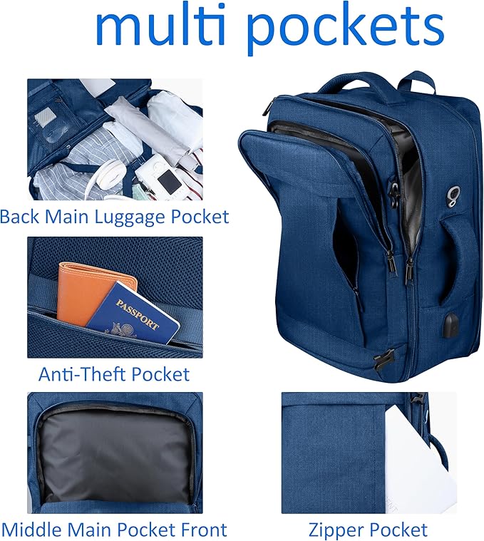 - šćExpandable & Large CapacityćThis large travel laptop backpack is designed to be expandable, backpack for travel giving you a large capacity pack up to 50L, unzipping to get larger storage space. The carry on backpack for men women fits overhead and under seat while on state of standard carry on size, ideal for business or weekend travel, and easily carried on most flights.