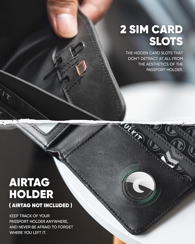 - Passport & Airtag Holder Combo Design- The built-in holder compatible with airtag to locate your passport while travelling. Keep track of your passport book cover wherever you go and never worry about forgetting where you left it.