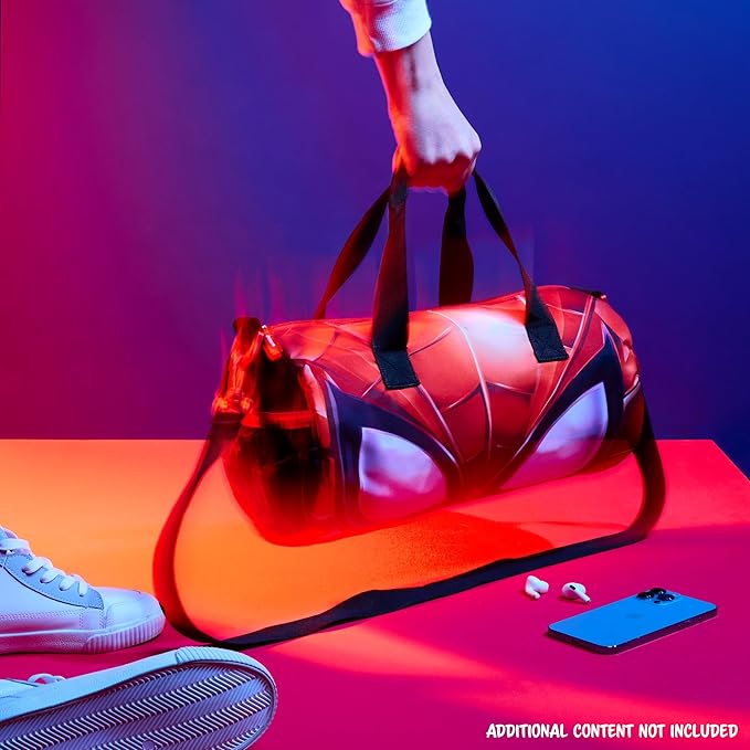 Disney Sports Duffel Bag, 15 x 7 x 7" Holdall 2 Pockets Adjustable Strap (Black/Red Spiderman)