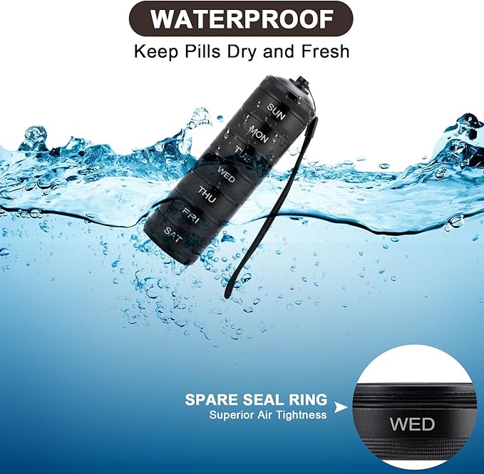 - Waterproof & Airtight: Each compartment is equipped with silicone O-ring gaskets, making it airtight and waterproof, ensuring the safety and dryness of your pills inside. This maximizes their freshness and extends their shelf life.