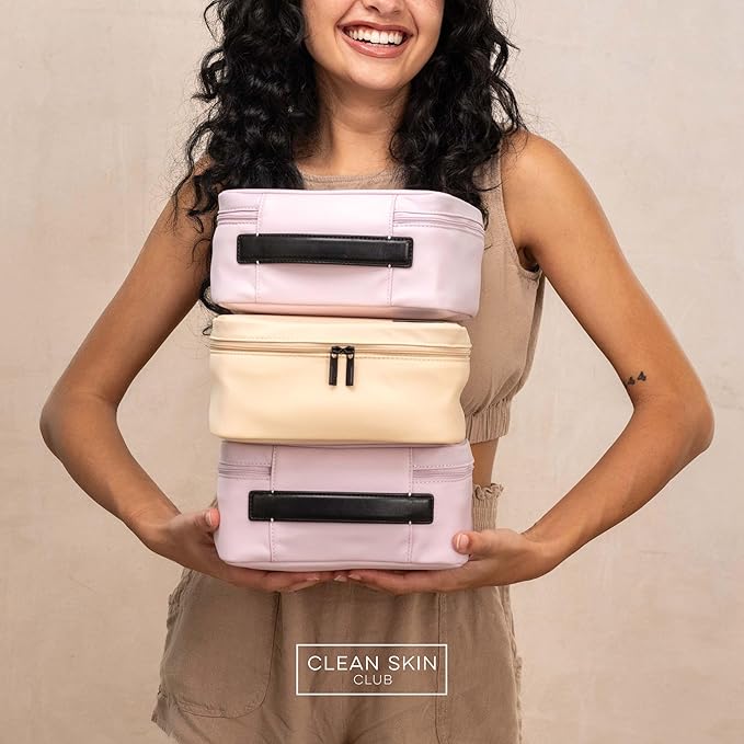 CLEAN SKIN CLUB Clean Towels XL Dedicated Travel Cosmetic Makeup Bag, Portable Large Capacity Beauty Toiletry Water Resistant Organizer Case with Dividers, Zipped Compartments