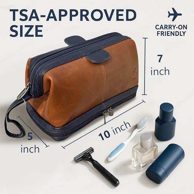 - ✅ PERFECT FOR TRAVEL: Compact yet roomy (10"L x 5"W x 7"H), this leather travel bag easily fits inside your carry-on suitcase or backpack, making packing stress-free.