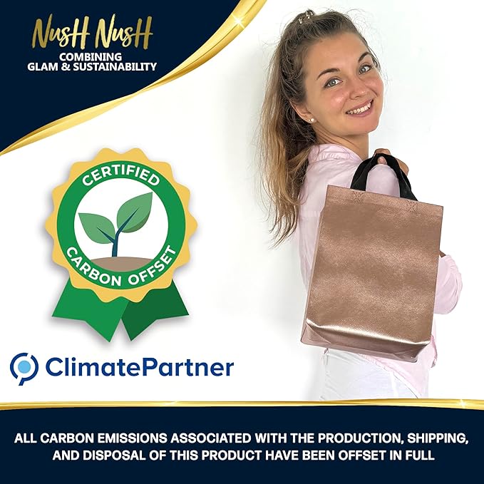 - ECO-FRIENDLY GIFT BAGS- Nush Nush teamed up with renowned non-profit "Climate Partner" to offset all carbon emissions associated with the entire life cycle of our products. Now you can enjoy gifting by using gift bags that are not just beautiful and reusable but are also 100% carbon neutral.