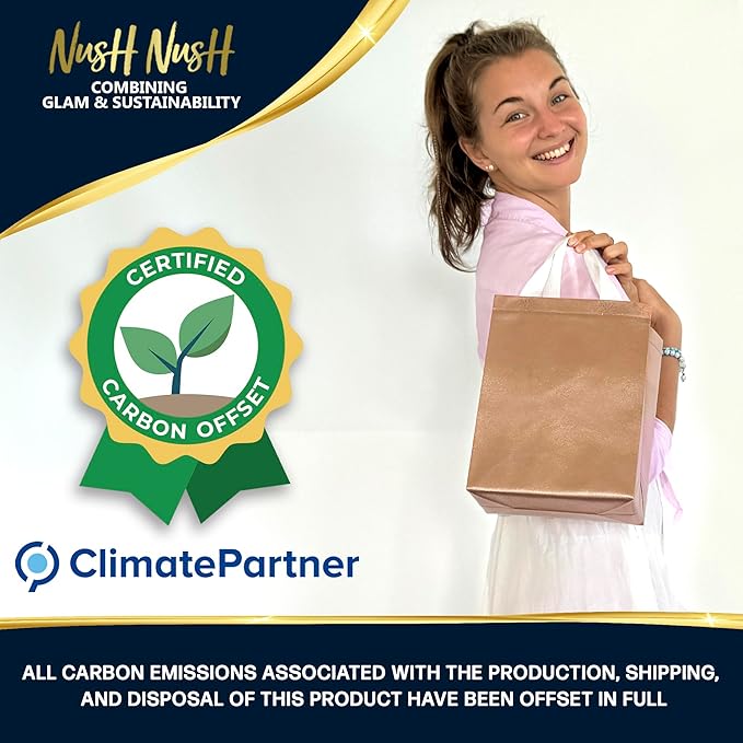 - ECO-FRIENDLY GIFT BAGS- Nush Nush teamed up with renowned non-profit "Climate Partner" to offset all carbon emissions associated with the entire life cycle of our products. Now you can enjoy gifting by using gift bags that are not just beautiful and reusable but are also 100% carbon neutral.