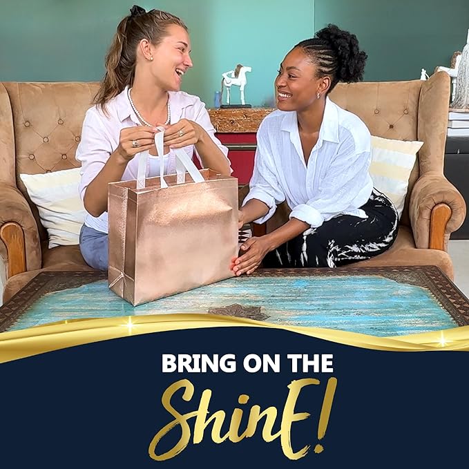 - BRING ON THE SHINE – Featuring a stunning laser glossy surface our rose gold gift bags with handles create beautiful reflections under different light conditions and are perfect as birthday bags, bridesmaid gift bags, wedding welcome bags, bachelorette gift bags etc